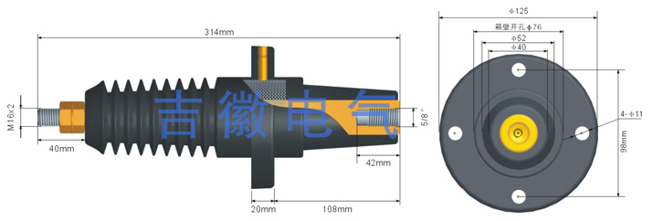 600A 15kV 美式一体式套管应用于带SF6负荷开关分支箱上与美式600A T型电缆接头连接。